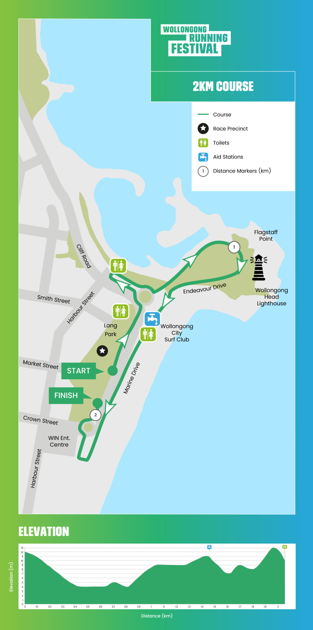| Prizes | All 2km finishers will receive a Finisher Medal. Prizes will be awarded to 1st, 2nd and 3rd male and female runners across the finish line. |